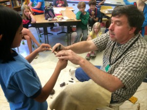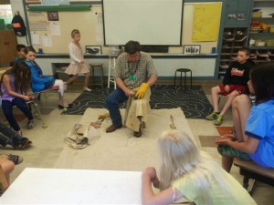 Recently, Terry Ozbun, Senior Archaeologist and Lithic Technology Specialist, was invited to Llewellyn Elementary School to make a presentation to their fourth grade students. Terry teamed with Portland State University professor Sarah Sterling to provide a slideshow about archaeology and a hands-on demonstration of flintknapping techniques. These pictures are from Terry’s class presentations.